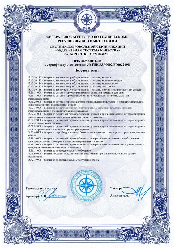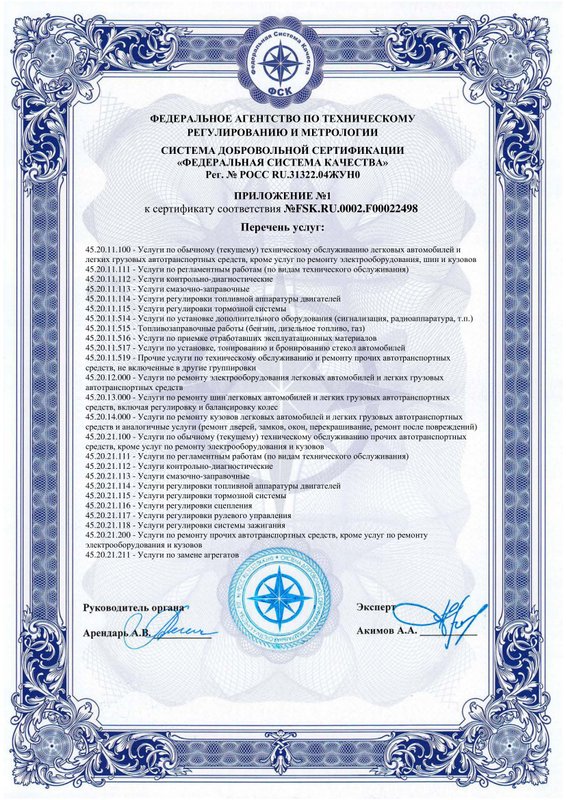 Мастера-приемщики приветливые, атмосфера чистая и уютная, а также есть бонусная программа с баллами - это очень классно. В последний раз я приезжал на осмотр подвески: позвонил за день, на следующий день приехал и в течение 15-20 минут мне всё проверили и оказали услугу. По окончании работ мне предоставили полный пакет документов - чек и подробный лист с расписанными работами.